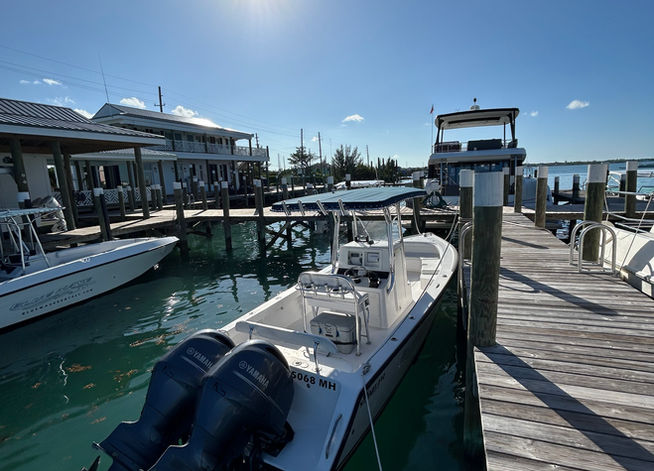 The powerful twin engines will have you flying across the waters. Perfect for fishing and exploring the many islands and cays in Abaco.